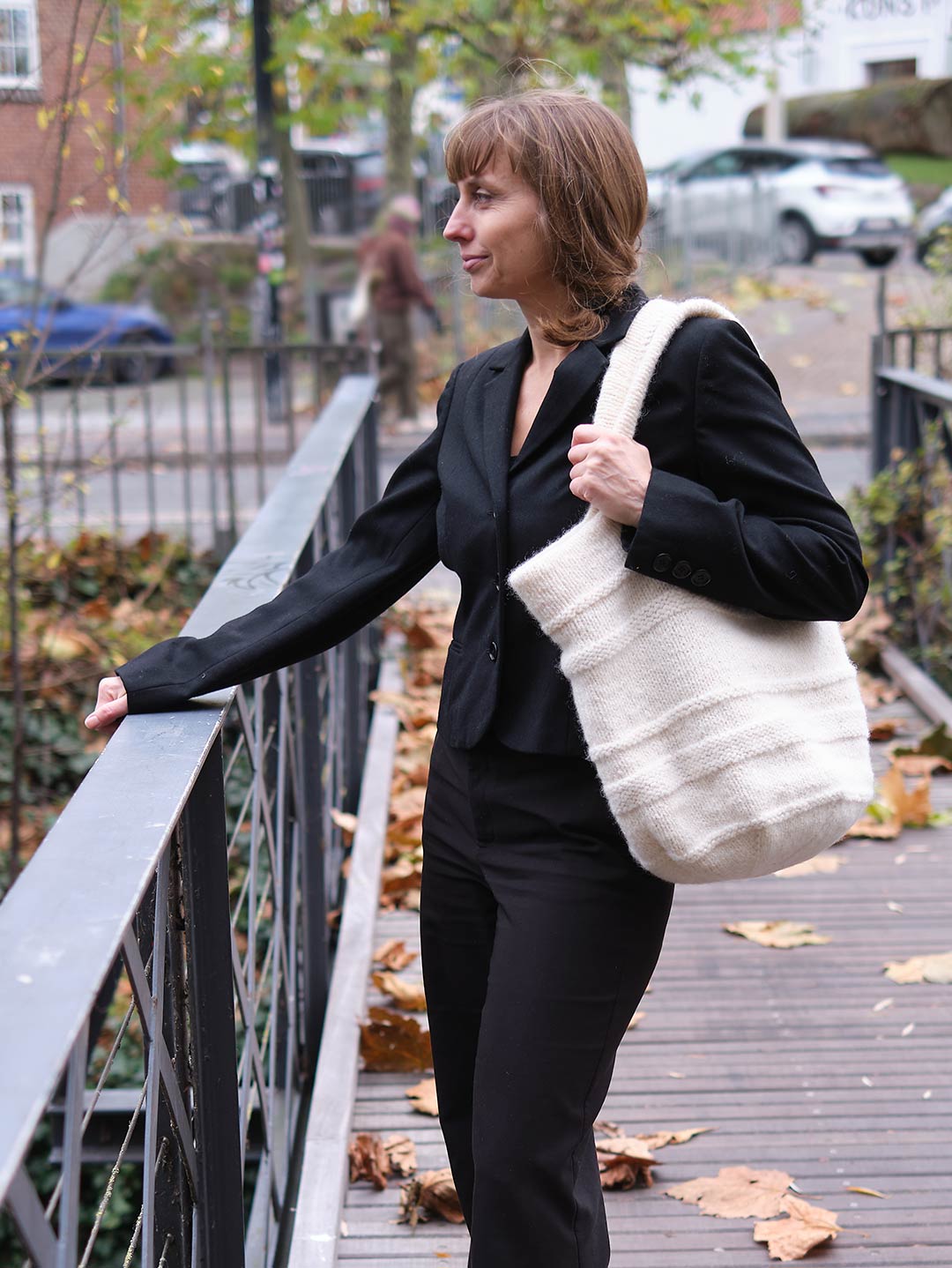 En håndstrikket skuldertaske i 100% uld – skabt af overskudsgarn fra Ege Carpets. Gertrud forener blødhed, styrke og fortælling i et enkelt, tidløst udtryk.